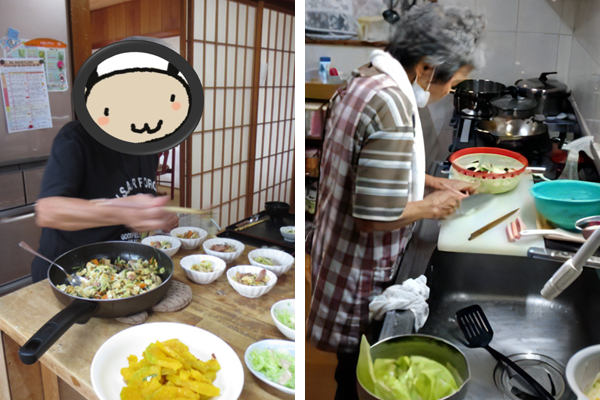 一緒に調理をしたり、清掃をしたり、やりがいや楽しさを見つけていけるように支援します。